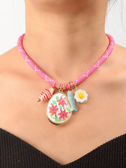 1pc Dopamine Cute Cartoon Geometric Personalized Elegant Korean Style Minimalist Macaron Girly Fresh Necklace - Multicolor - View 5