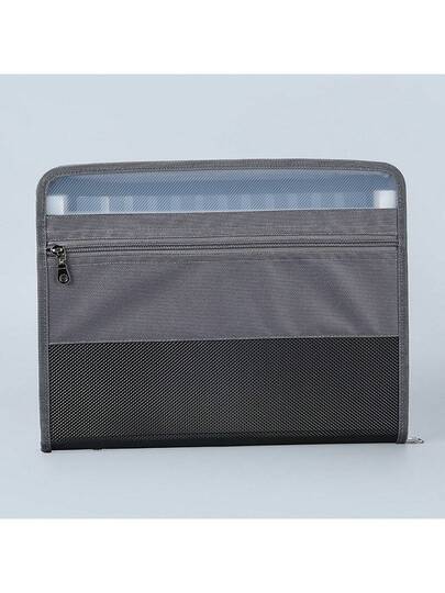 1pc Double Zipper Cloth Art Splicing Accordion File Folder, 13 Grids Multifunctional Classification File Holder - Black Gray - View 1