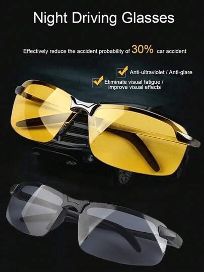 1pc Driving Night Vision Glasses For Men Women Drivers Glasses Semi Rimless Eyeglasses Goggles Beach Accessories Glasses Shades Looks Street Style And Suit For Sweater Jacket Sweatshirt Hoodie Leather Pants And Cargo Pants - one-size - View 1