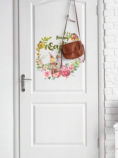 1pc Easter Bunny Shaped Creative Door Sticker, Self-Adhesive Wall Decal For Home Decoration - Multicolor - View 1