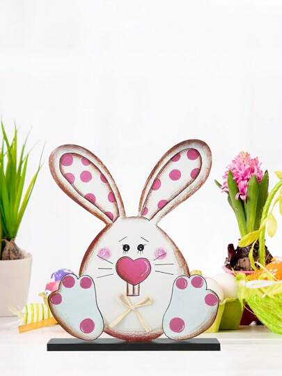 1pc Easter Rabbit Wooden Sign, Easter Decoration For Home, Farmhouse Cute Rabbit Decor, Easter Table Centerpiece Decoration, Spring Home Decor, Office Gift - Multicolor - View 1