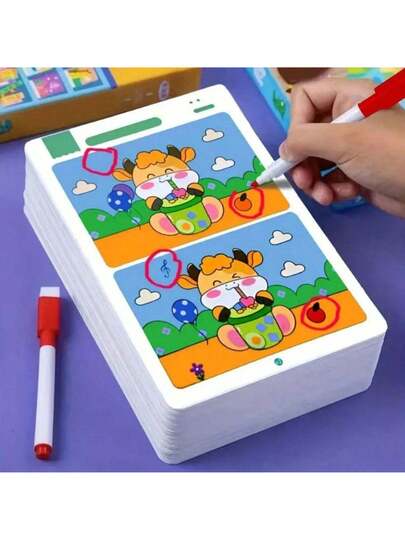 1pc Educational Attention And Focus Training Game - Reusable Wipe Puzzle Cards For Exploration Activities, Focus Training, Cognitive Games, Testing And Assessment, Suitable For Home And School, Easter, New Year, Birthday, Party Favors, Back To School Supplies (Marker Color Random) (Style & Color Random) - Multicolor - View 1