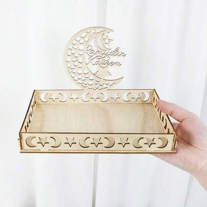 1pc Eid Al-Fitr White Crescent Moon & Star Wooden Tray, Suitable For Ramadan Food Serving, Eid Al-Adha Ramadan Party Decor - Multicolor - View 18