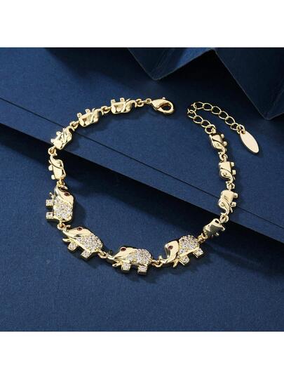 1pc Elegant 18K Gold Plated Copper Cute Mother & Baby Elephant Charm Bracelet, Fashion Accessory, Gift For Women, Suitable For Daily Wear - Yellow Gold - View 5