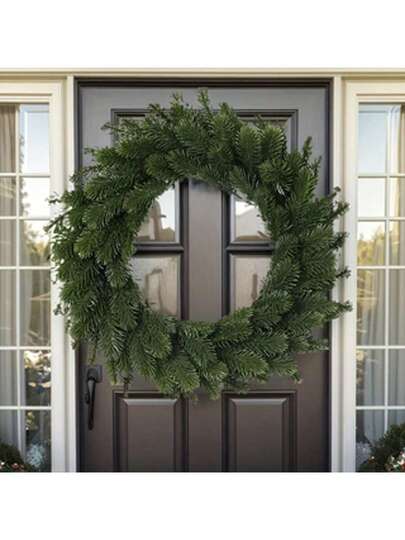 1pc Elegant Artificial Pine Needle Wreath With Foliage And Gold Accents - A Heavy-Duty Plastic Indoor/Outdoor Christmas Door Hanger, Table Centerpiece, Or Festive Party Decoration. Suitable For Front Doors, Mantels, Or Tables - Features A Ribbon Loop For Easy Hanging (No Feathers/Artificial Plants). A Year-Round Holiday Wreath Perfect For Christmas, Easter, Halloween, New Year's Eve. Realistic Pine Needles, Large Christmas Wreath. - Green - View 7
