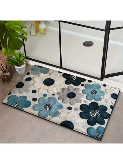 1pc Elegant Floral Pattern Super Soft Microfiber Bath Mat, Non-Slip, Ultra Plush, Suitable For Bathroom, Bedroom, Kitchen, Entryway, Indoor & Outdoor, Home Decor, Bathroom Accessories, Perfect Housewarming Gift - Multicolor - View 7