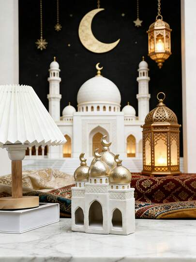 1pc Elegant Islamic Mosque Golden Dome Crescent Moon Tree Resin Decor Sculpture, Traditional Middle Eastern Style Beige White Gold Detailed Dome Desk Decoration, Perfect Islamic Ramadan Religious Gift For Celebrating Ramadan And Eid - Castle Style - View 7