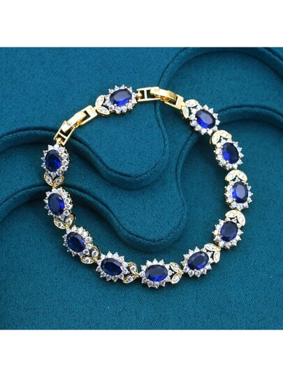 1 chiếc vòng tay kiểu cổ điển thanh lịch, đính đá Zirconia xanh, mạ vàng 18K, có thể điều chỉnh kích cỡ, thích hợp đeo hàng ngày và làm quà tặng, phù hợp cho mọi mùa, lựa chọn lý tưởng cho ngày Valentine.