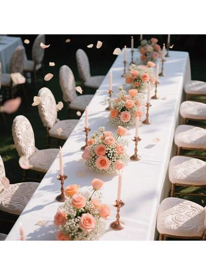 1pc Elegant White Large Rectangular Tablecloth, Suitable For Dining, Gatherings, Decoration, Weddings, Homes, Parties And Outdoor Events. Durable Polyester Material, Available In Multiple Sizes, Designed For Group Gatherings - White - View 7