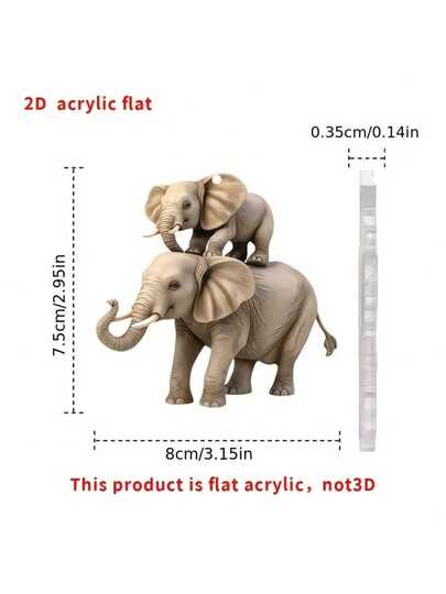 1pc Elephant Hanging Decoration, 2D Acrylic Decorative Pendants, Car Interior Rearview Mirror Decorative Pendants, Car, Bag And Keychain Accessories - Multicolor - View 2