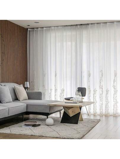 1pc Embroidered Sheer Lace Curtain, 3D Relief European Style Window Curtain, Fairies Embroidered Transparent Curtain, Suitable For Bedroom And Living Room Windows, With Rod Pocket Design - White - View 1