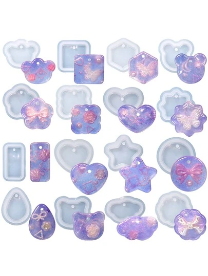 1pc Epoxy Fillet Heart Bear Plum Blossom Free Polishing Silicone Mold DIY Pendant Making Accessories - White - View 1