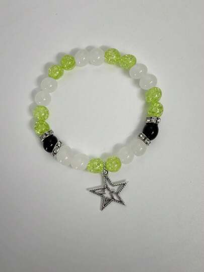 1pc European & American Style Double-Layered Hollow Out Star Bead & Pentagram Stone Bracelet For Women, Valentine'S Gift - Multicolor - View 1