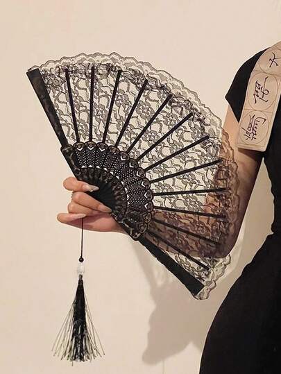 1pc Exquisite Gold Rose Lace Fan, Elegant And Beautiful Lace Material, Cool Fan Accompanies Your Daily Travel, Gatherings And Parties, Suitable For Photography And Dancing, A Must-Have Decorative Item For Fashionable Women's Charm! Vintage Black Lace Folding Fan JK Lolita Cheongsam Fan Antique Style Photo Props Lace Lace Women Folding Summer Wedding Gifts Dance High End Props Folding Fan Fan Hand Fanfolding Fan - Multicolor - View 17