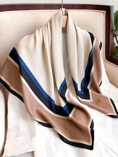 1pc Fashion Floral Print Polyester Square Scarf, Casual Bohemian Style For Dress - Beige - View 1
