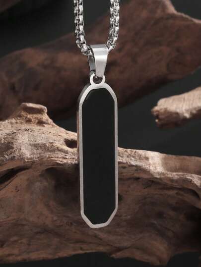 1pc Fashion Glossy Bar Pendant Necklace Stainless Steel Modern Geometric Jewelry Suitable For Everyday Wear - Multicolor - View 1