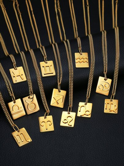 1pc Fashionable 12 Constellation Detail Square Charm Necklace Women's Daily Commute Jewelry - Yellow Gold - View 1