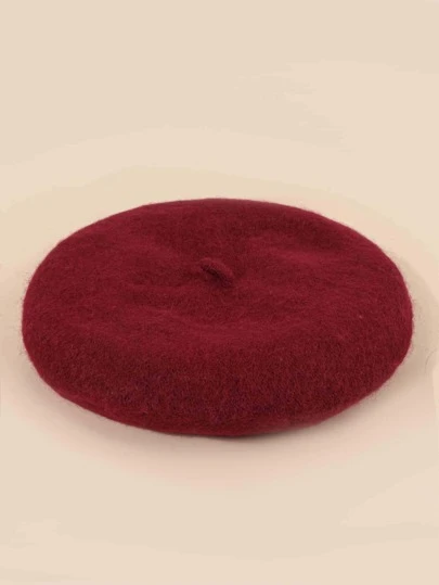 1pc Fashionable Beret Hat For Women/men, Solid Color, Suitable For Winter - Burgundy - View 11