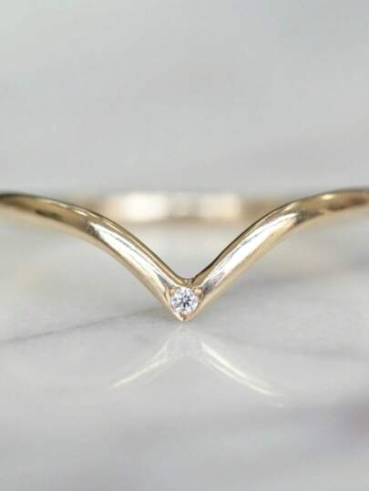 1pc Fashionable Cubic Zirconia V-Shaped Women's Ring, Perfect For Daily Wear, Party, Anniversary - Gold - View 1