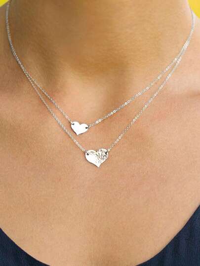 1pc Fashionable Elegant S925 Sterling Silver Double Hearts Stacked Pendant Necklace, Suitable For Valentine'S Day, Mother'S Day, Birthday, Party, Banquet, And Gifts - Silver Double Heart - View 1