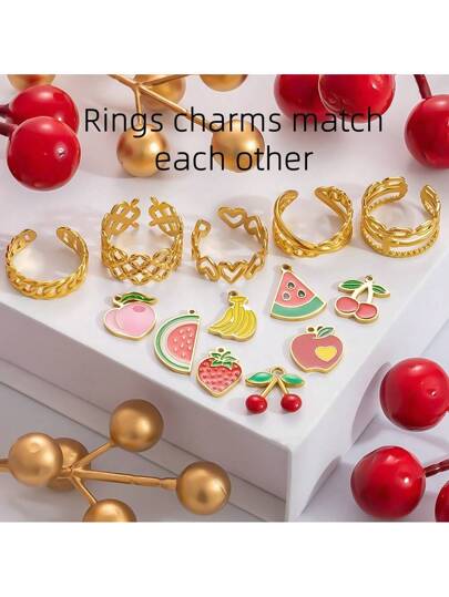 1pc Fashionable Fruit Charm Open Ring, 18K Gold Plated Stainless Steel, Decorative Jewelry Suitable For Women To Wear On Holidays - Gold - View 11