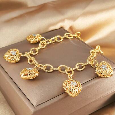 1pc Fashionable Luxury Women's Open Heart Shaped Hip Hop Punk Bracelet, Bridal Wedding Birthday Party Valentine's Day Eid Jewelry Gift - Yellow Gold - View 1