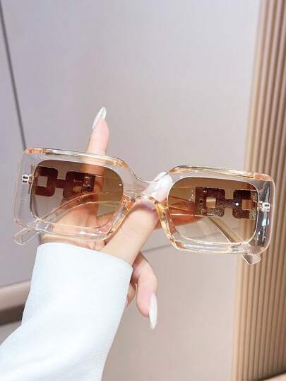 1pc Fashionable Oversized Y2K Black Frame Unisex Glasses For Beach Holiday - Brown - View 1