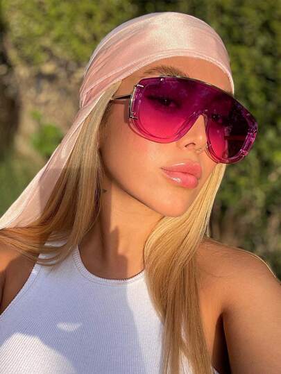 1 Pair Fashionable Vintage Oversized Intricate Metal Framed Women Glasses, Elegant And Suitable For Various Occasions - Purple - View 1