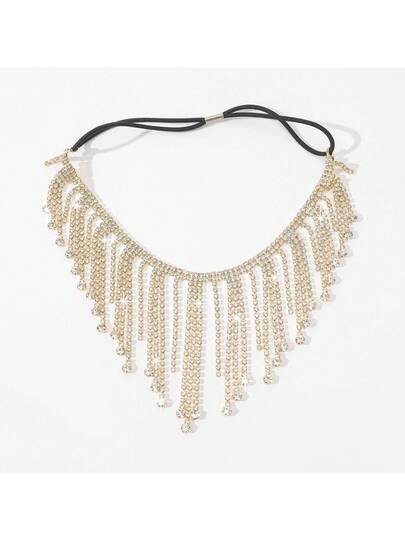 1pc Personalized Fashionable Bling Rhinestone Fringe Geometric Design Sexy Party Nightclub Leg Chain For Women - Gold - View 1