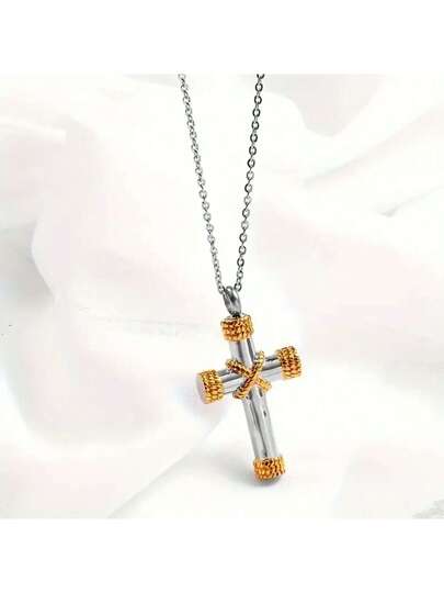1pc Fashionable Stainless Steel Cross Pendant Necklace, European & American Style, Multi-Color, Can Open, Popular Item Accessory For Men - Necklace - View 1