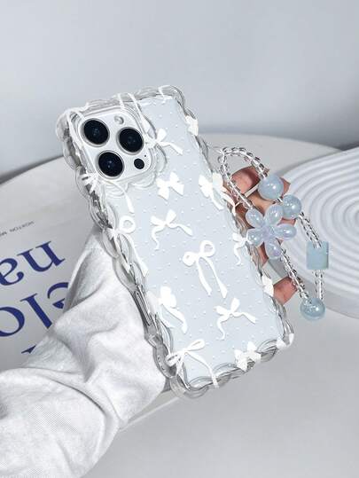 1pc Fashionable Transparent Polka Dot Bow Print Shockproof Phone Case With Lanyard, Compatible With IPhone11 12 13 14 11Promax 12Promax 13Promax 14Promax XR 15 15PRO 15PROMAX 16 16PRO 16PROMAX 17 17PRO 17PROMAX - Multicolor - View 1