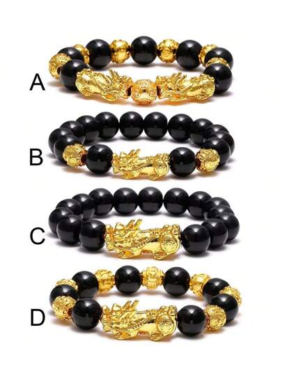 1pc Feng Shui Black Obsidian Bracelets Set - Good Luck Amulet Dragon Lucky Charm Bracelets Pi Xiu Pi Yao Attract Lucky Wealthy bracelets for women men - Gold - View 1