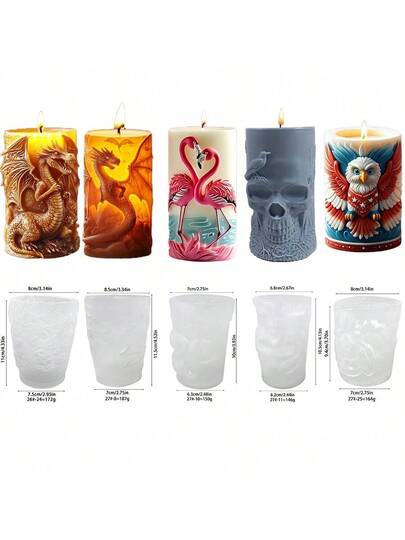 1pc Flamingo, Dragon, Skull, Cartoon Bird Pattern Cylinder Craft Candle Making Silicone Mold - White - View 11
