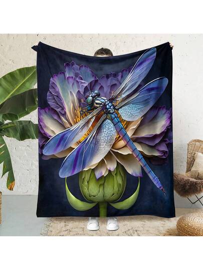 1pc Flannel Fleece Blanket With Dragonfly Pattern, Suitable For All Seasons As Abstract Design Soft Warm Sofa, Air-Conditioning And Bed Blanket - Multicolor - View 1
