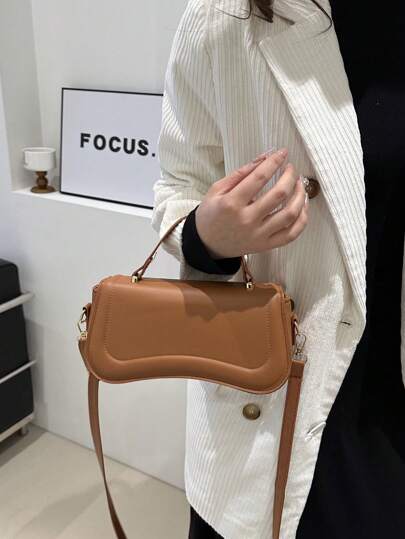 1pc Flap Closure Asymmetric Shaped Solid Color Pu Shoulder Bag & Handbag With Car Line Details, Suitable For Daily Use Of Women - Brown - View 1