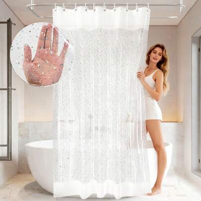 1pc Flashy Star Shower Curtain Liner, High-Quality PEVA Bath Curtain Inner Lining With Sparkly Star-Shaped Pattern, Fashionable Bathroom Decoration Item With 12 Plastic Hooks - A - View 1