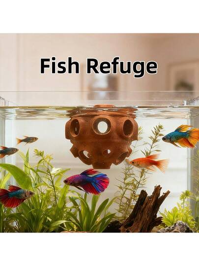 1pc Floating Fish Tank Hideaway Cave Decoration, Durable Plastic Aquarium Decor Accessory - Suitable For Small Fish Tanks, Betta Habitats, Shrimp Shelters, Underwater Tunnels And Caves, Floating Fish Feeding Ring, Betta Hiding Spot And Shrimp Shelter, Aquarium Cave Decor, For Freshwater Fish Hobbyists And Fish Keepers - Multicolor - View 1