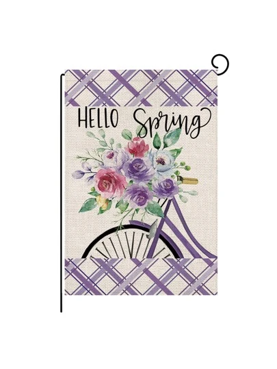 1pc Floral & Bike Pattern Garden Flag - Multicolor - View 1