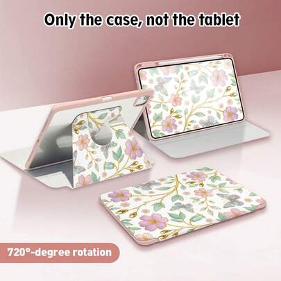 1pc Floral & Butterfly Pattern Flip Cover Tablet Case With Pen Slot, 720 Degree Rotating Stand, PU Leather Case With Auto Sleep/Wake Function, Suitable For Huawei, Honor, Apple, , And Other Tablet Brands, Suitable For Back To School, Valentine's Day - Multicolor - View 1