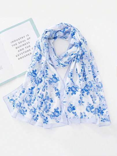 1pc Floral Print Chiffon Scarf/Head Wrap - Multicolor - View 1