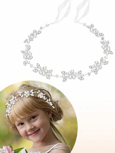 1pc Flower Girl Headpiece, Flower Girl Hair Accessory, Silver Wedding Headband For Girls, Princess Crystal Pearl Hair Accessories For Birthday, Party, First Communion,Wedding - Silver - View 1