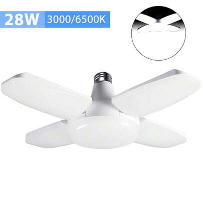 1pc Foldable E27 LED Garage Light, AC85-265V Voltage, 28W Power, Suitable For Home Ceiling Light, E26 4-Leaf Light, Mini Foldable Light, High Brightness, Compact Size - White - View 1