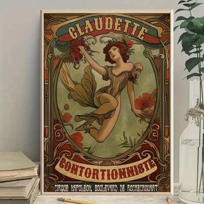 1pc Frameless Canvas Poster, "Claudette" The Circus Freak, Vintage Digit Printing Cabaret Poster, Retro Circus Poster Art, Home Decor, Vintage Twisted Room Aesthetic Poster, Gallery Dorm Bedroom Poster - Multicolor - View 1