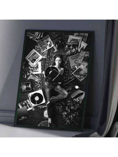 1pc Frameless Retro Black And White Smoking Girl Art Canvas Poster - Retro Records And Books Abstract Wall Art, Bedroom, Living Room, Home Office Decoration - Handmade High Quality Canvas Printing, Unique Gift Creativity, Vintage Frameless Wall Arts Posters - Multicolor - View 6