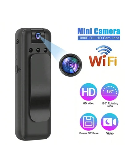 1pc Full HD 1080P Mini-Camera, Supporting WIFI Connection, High-Definition Night Vision, Compact Body, USB Charging, 180-Degree Rotatable Lens, Wearable Design, Portable Sports DV/DVR, Suitable For Sports, Cycling, Travel And Recording Life-Surveillance Camera, Law Enforcement Recorder. - Black - View 11