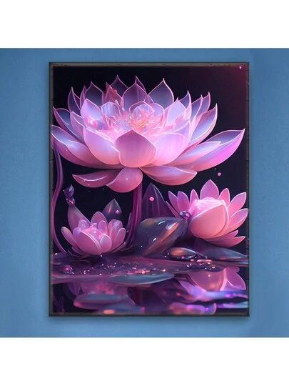 1pc Full Square Diamond Painting Kit Lotus Handmade Gift Diamond Mosaic Flower Home Decor - Multicolor - View 1