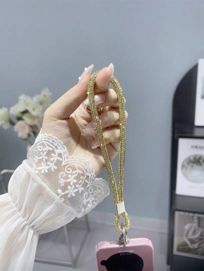 1pc Fully Rhinestoned Versatile Gold-Tone Lanyard - Gold - View 1