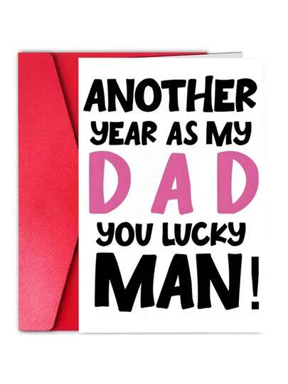 1 Thiệp chúc mừng hài hước "Thêm một năm làm bố, bố thật may mắn!" kèm phong bì đỏ, thiết kế sinh nhật vui nhộn, thiệp hoàn hảo cho Ngày của Cha và sinh nhật dành cho bố, người cha và người chồng.