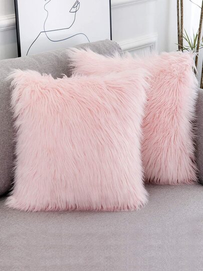 1pc Fuzzy Cushion Cover Without Filler, Pink Plush Throw Pillow Case, Pillow Insert Not Include, For Sofa, Living Room - Pink - View 2