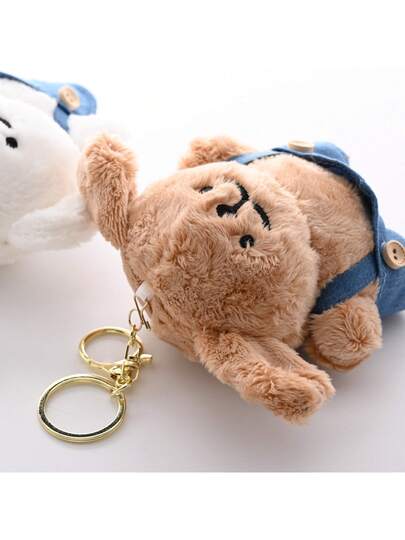 1pc Fuzzy Overalls Puppy Plush Doll Doll, Adorable White Dog Stuffed Animal Keychain, Pendant, Home Decor, Kids Doll, Birthday Gift, Holiday Gift - Multicolor - View 8